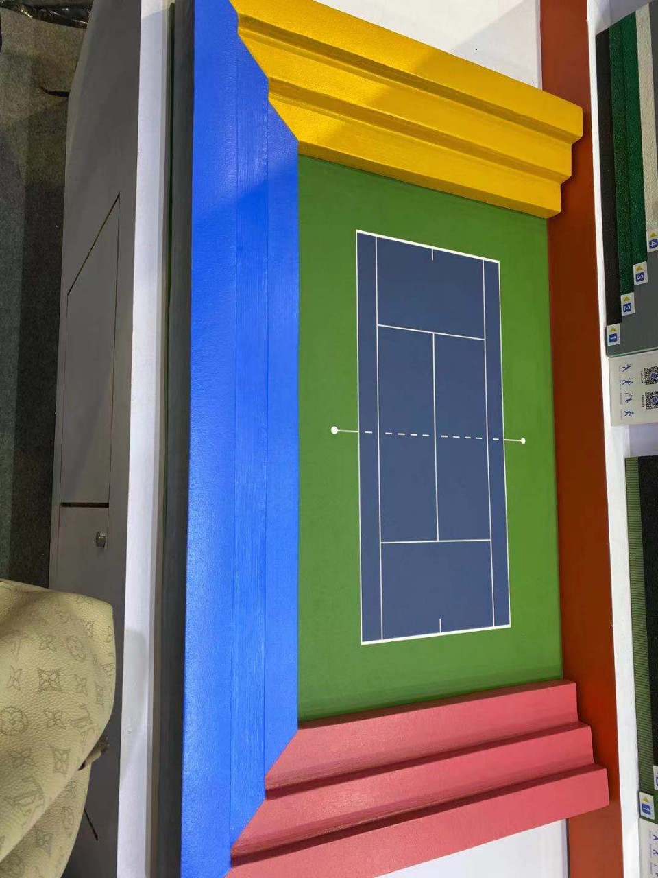 托柏斯色彩豐富、場(chǎng)地多樣的水性運(yùn)動(dòng)場(chǎng)地面材料吸引了一批又一批的客戶(hù)觀賞咨詢(xún)。環(huán)保丙烯酸球場(chǎng)地面材料良好的舒適性、較高的彈性以及穩(wěn)定的速度,是完全先進(jìn)的網(wǎng)球地面材料系統(tǒng)。