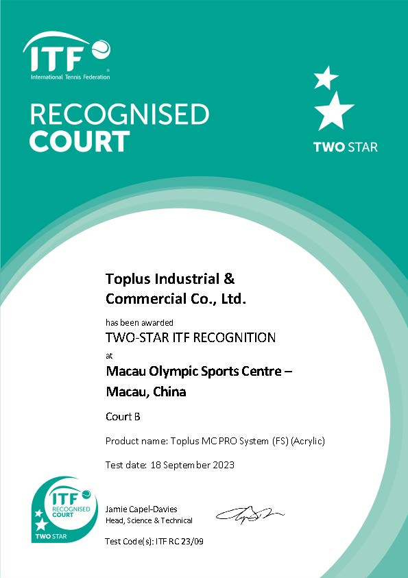 奧林匹克戶外網(wǎng)球場B場,通過ITF(國際網(wǎng)聯(lián))材料供應(yīng)商及施工商之二星認證。