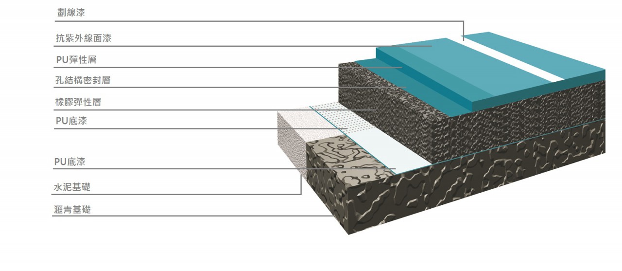 托柏斯聚氨酯夾心型系統(tǒng)是一種有彈性、耐磨及擁有良好吸震效果的系統(tǒng),橡膠顆粒層擁有絕佳的彈性及吸震特性,減輕使用者運動中的疲勞感,也降低運動中受傷的機率。無縫安裝方式更易達到運動地坪表面的平整性。