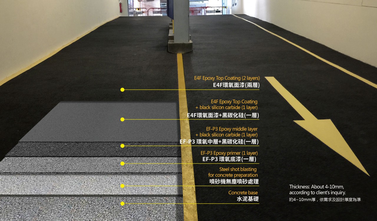 托柏斯AR超耐磨防滑負重系統(tǒng),採用黑碳化硅加強防滑表面,此系統(tǒng)表面防滑,具有良好的耐水性能及耐磨性能。適用於斜坡道以及流動性高的停車場。